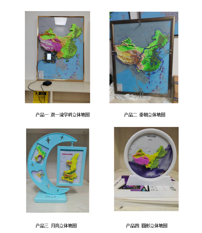 1. 智能立体地图。我们在国内国际首创3D打印智能立体地图,正在将其应用于博物馆、展览馆、开发区、会议室、家居、中小学教育(历史、地理、文学、英语)等。这种技术帮助人们更好地理解历史、地理、政治、经济、文化、旅游等学科,相信它将全方位地改变我们的生活。
