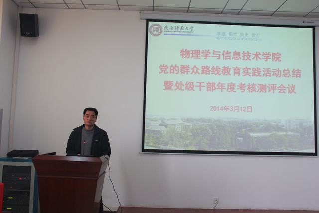 3月12日下午,我院在长安校区致知楼六层会议室召开了党的群众路线教育实践活动总结大会。公司全体教职工、离退休职工代表、员工代表参加了此次会议。会议由屈世显经理主持。