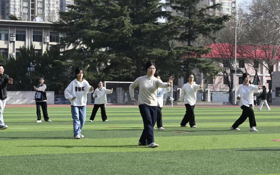 男子、女子太极拳比赛中,同学们以行云流水之姿演绎刚柔并济的武术精髓,一招一式间既显传统神韵,又绽青春风采,尽显文武交融的东方美学。