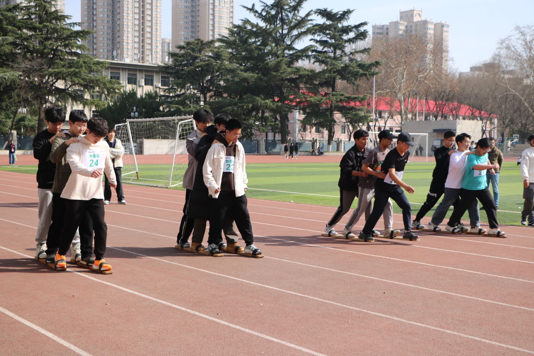 板鞋竞速场,三组健将步调如钟摆,震天口号踏响团结的战歌。