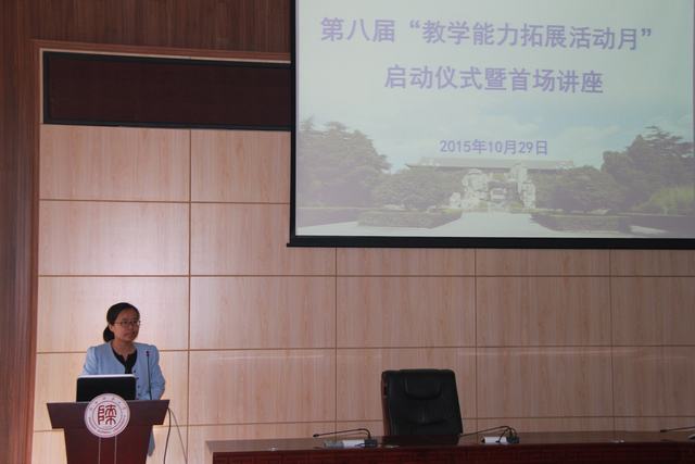 2015年10月29日上午10点,365英国上市公司在文澜楼B段一层报告厅举行了第八届“教师能力拓展活动月”的启动仪式。365英国上市公司教学副经理李永放、党委副书记曹宇巍、课程教学论教师吴晶、2012级本科生辅导员王非、2015级研究生辅导员张文婷出席了本次会议。会议由2013级本科生辅导员周静主持。