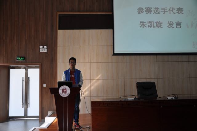 随后,2013级物理一班朱凯旋代表参赛选手发言。朱凯旋说到此次教师能力拓展活动月就是公司对同学们讲课水平和师范风采的一次检阅。希望大家可以通过此次活动,进一步提升综合素质,提高就业能力,为祖国未来的教育事业贡献自己的一份力量。