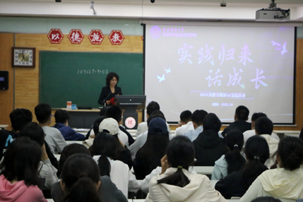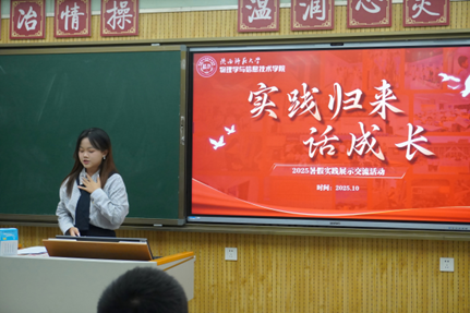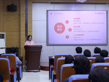 蒋嫽同学就其参与的“返家乡”社会实践,从活动背景、具体过程、收获展示、未来展望四个部分进行了分享。