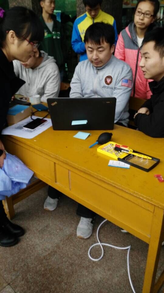 为提高社团成员实践能力,以自身特长服务公司师生,365英国上市公司电子协会于2015年11月7日在雁塔校区喷泉广场举办了一场以“电脑义诊,温暖校园”为主题的电脑义务维修活动。社团特邀嘉宾神州数码工程师姚明升,戴尔课戴表陕西区校园专员侯帅进行维修指导,全体社团成员参与了本次活动。