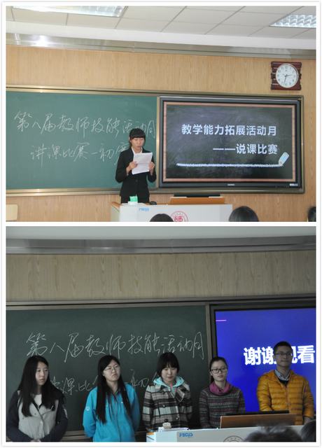 活动中,参赛选手被分成五个大组,分别在文渊楼3101、3102、3103、3104和3105教室进行比赛。每个教室内的参赛选手根据签到顺序上台进行说课,每五个选手为一小组。小组说课结束之后,评委对他们的表现逐一进行点评。指出了说课比赛应该把侧重点放在教法和学法以及教学程序的设计上,建议参赛选手在重难点讲解时应该有自己的创新。同时,评委们强调,在说课时,要注意讲课对象及所选教材的版本等。