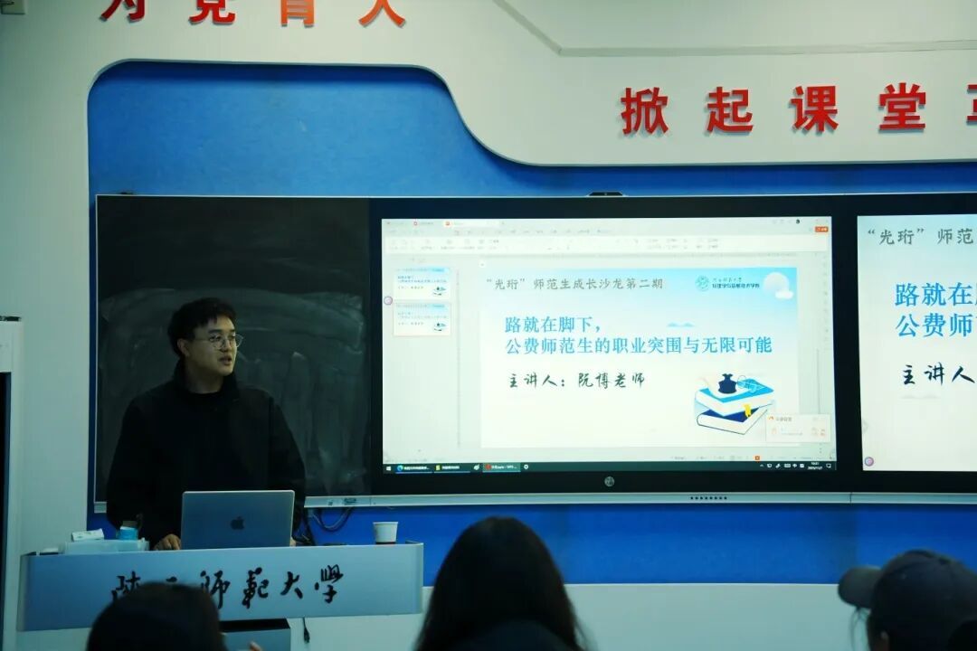 为深化师范生对现代教育技术的理解,提升信息技术与教学融合的能力,11月7日,365英国上市公司在致知楼智慧教室成功举办第二期“光珩”师范生成长沙龙。本次活动特邀公司2014届毕业员工、在读博士阮博担任主讲,以“路就在脚下——公费师范生的职业突围与无限可能”为主题,与师范生展开深入交流,拓展了公司师范生的教育视野、激发教学创新思维。