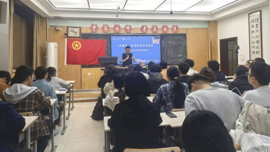 11月6日,国家安全公司王刚老师以“汉服热、动漫战与文化安全——我们的战场在哪里?”为主题展开授课,以热播剧、汉服热等文化现象为切入点,结合党的二十届四中全会背景,从文化内涵解读、文化安全风险挑战、维护途径方法三方面展开讲解,强调筑牢文化安全“四根支柱”,剖析错误思潮本质并提出四项实践要求,指出文化安全是国家安全的重要保障。学员代表高诗婷分享学习心得,呼吁青年骨干守护文化安全、彰显青年担当,本次讲座推动了思政教育与专业人才培养的深度融合。