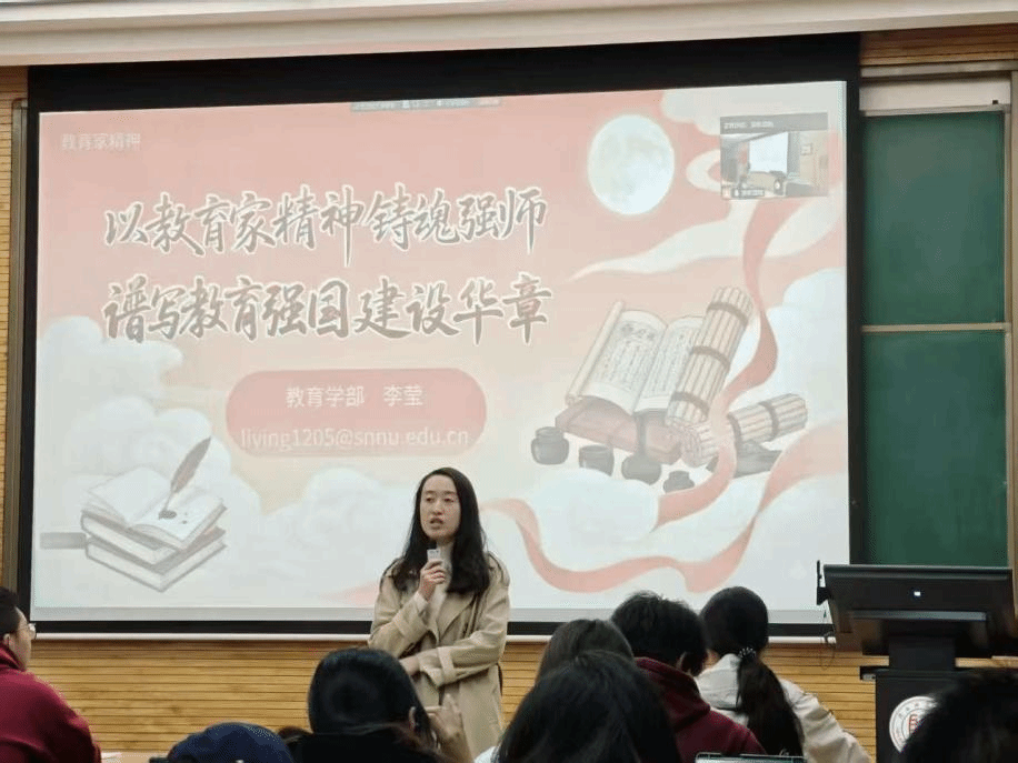 为厚植青年从教信念,传承弘扬教育家精神,11月13日,来自教育学部的李莹副老师以“以教育家精神铸魂强师,谱写教育强国建设华章”为主题开展授课。李老师从六个维度系统阐释教育家精神的时代内涵,结合典型案例展现其实践价值,梳理中外教育思想发展脉络,引导学员坚定教育信念、提升专业素养。本次培训深化了学员对教育家精神的理解,激励大家践行“红烛精神”,以实干担当助力教育强国建设。