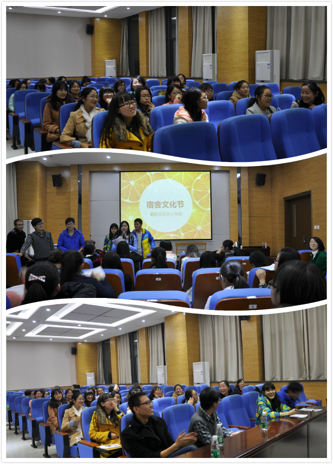 11月28日晚19:00在致知楼报告厅举行“默契宿舍——你是我的好朋友”活动。相识已两载,舍友之间已经了解了彼此,有了一定的默契度,使得“比手画脚”精彩不断,笑料百出。在一比一答中,同学的机智和丰富的生活阅历得以体现。“默契答题”环节,如同一场关于舍友之间相互了解程度的测验。各位同学在活动中玩得很尽兴,增进了舍友感情。最终通过综合积分,女生302、313、315宿舍分别获得了默契宿舍一、二、三等奖。