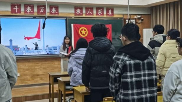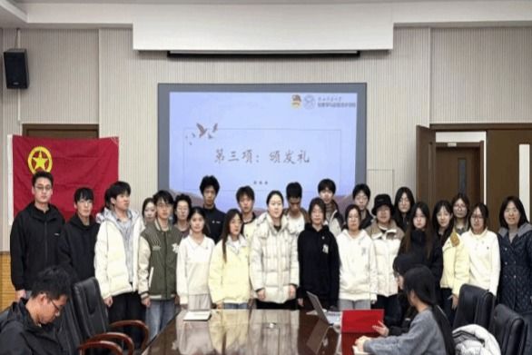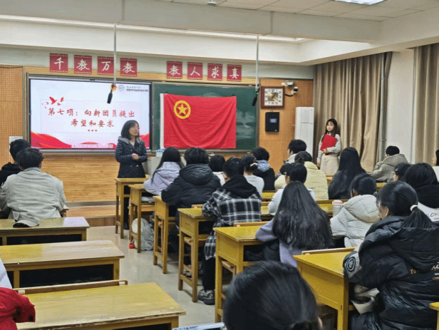 最后,全体人员肃立齐唱团歌,激昂的歌声为本次入团仪式画上圆满句号。仪式结束后,团委书记周静老师为全体新团员讲授团章团纪专题团课。