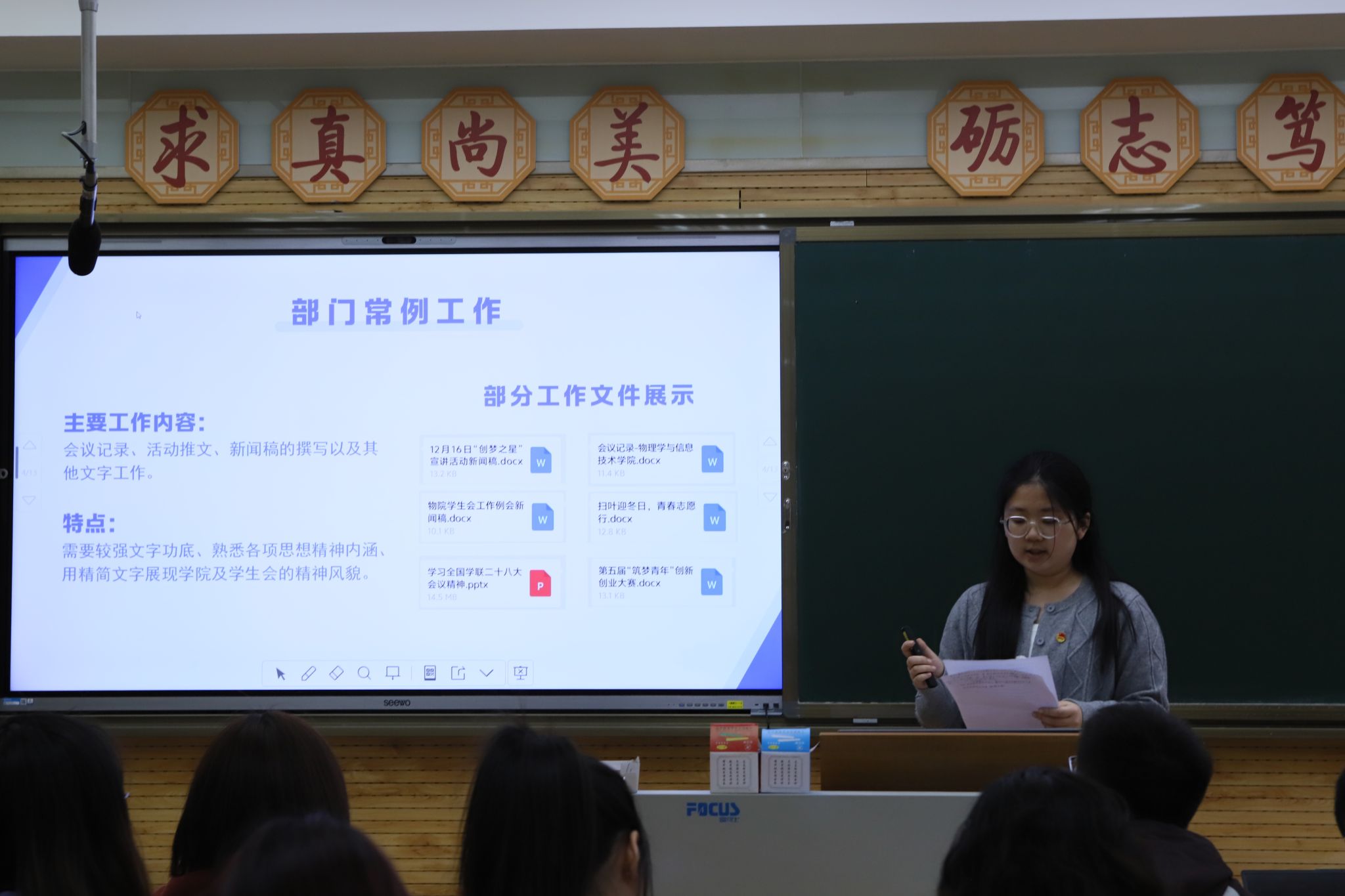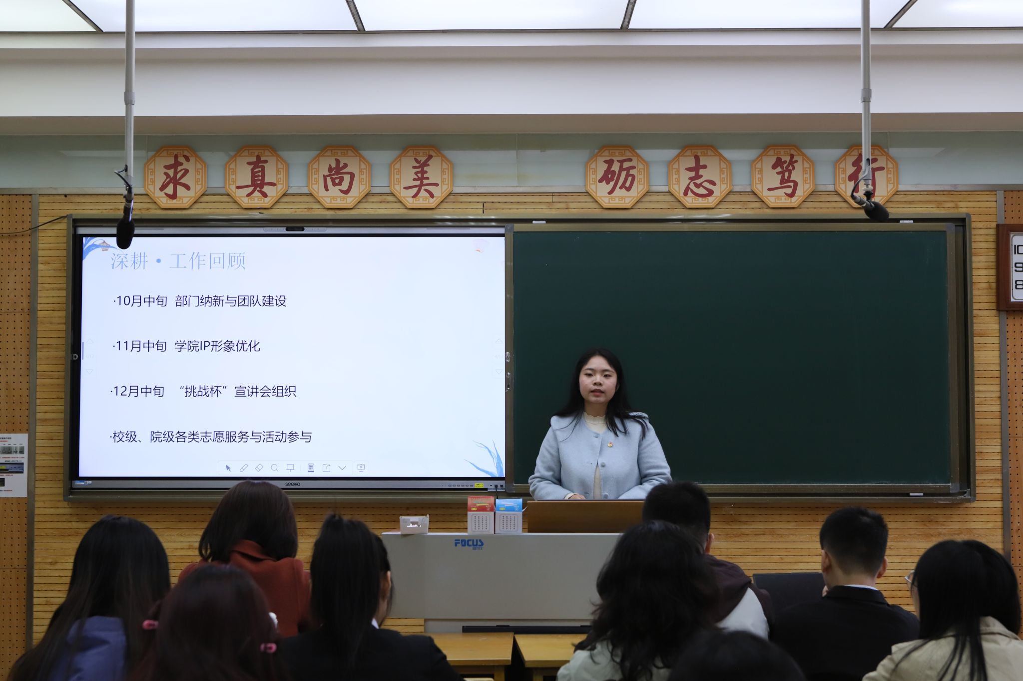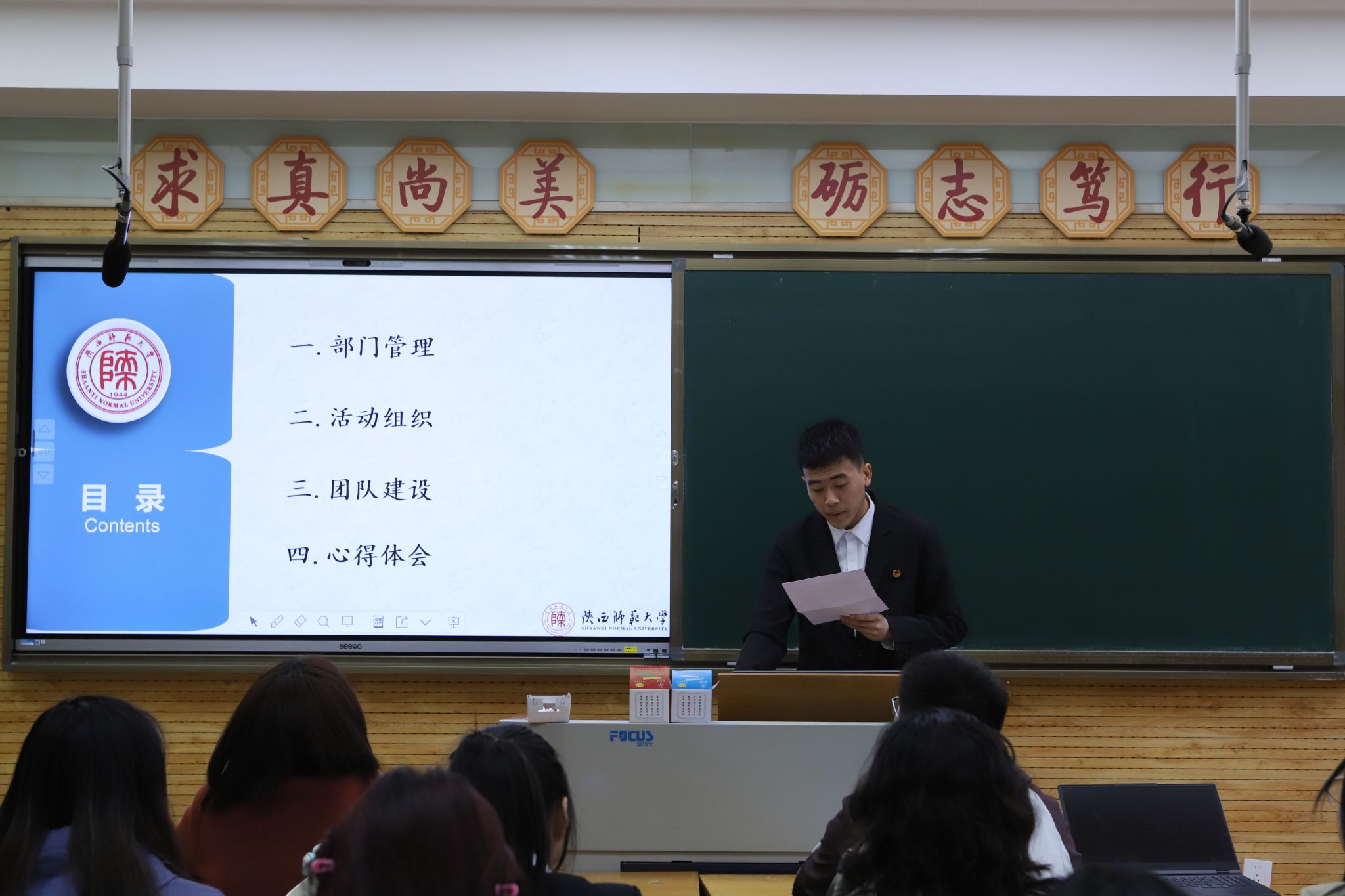会议第二阶段,员工会雁塔校区负责人及各部门负责人依次述职,对上学期主要工作、成绩、不足以及下一步工作计划进行汇报。
