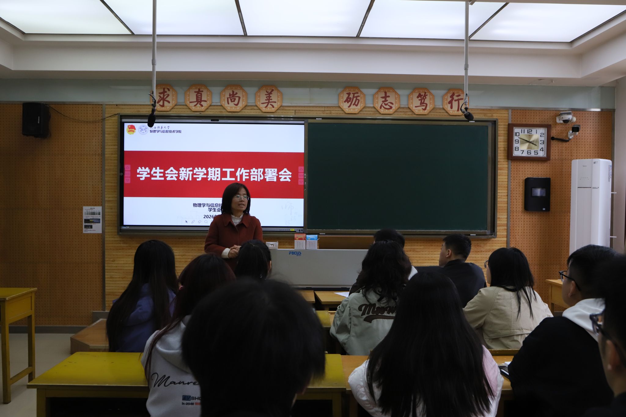 2026年3月21日14:30,公司员工会述职会议暨新学期工作交流会在雁塔校区5303教室召开。公司团委书记周静及员工会全体成员参会。