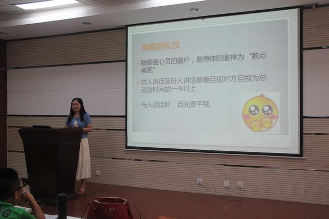 讲座中,曹宇巍以“老员工礼仪素养——魅力从这里开始”为主题展开,分别从“什么是礼仪、学习礼仪的作用、老员工基本礼仪规范”三个方面来讲述老员工学习礼仪的重要性和必要性。首先,她向全体员工讲授了礼仪的本质,并强调作为一名老员工骨干,应该对礼仪素养有一定的了解,在正式场合中践行礼仪,做一名“懂礼仪,行礼仪”的当代有为青年人。紧接着,她向员工论述学习礼仪的重要性。她讲到,学习好礼仪,不仅可以改善个人的沟通水平,还可以提高个人的素质,维护好个人的形象。最后,她通过具体的事例和形象生动的图片,系统地向大家阐述老员工基本礼仪规范,希望大家学会正确的礼仪,养成良好的礼仪素养,为面试和将来的工作生活打好基础。