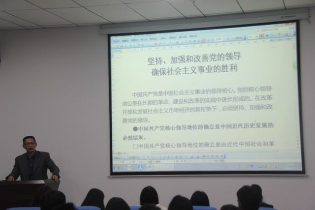 讲座中,刘老师就他几十年的工作经验、人生阅历,展开题为“坚持、加强和改善党的领导,确保社会主义事业的胜利”的讲解。期间,他将各个观点诠释得游刃有余,内容充实而深刻,极具思想性,让同学受益匪浅。在回顾党光荣艰辛岁月的过程中,不仅让广大学员们感悟今天生活的幸福,鞭策老员工努力学习奋斗,还增强老员工的爱国热情和振兴祖国的责任感和使命感,对学员们有重大的教育意义,他的一言一行,对每一位同学的发展都起到了无可比拟的导向作用。随后,刘老师介绍了入党的流程与条件、党的先进性、党员的先进性、党员的模范带头作用、党的纪律、方针政策等,使学员们更加了解在大学阶段如何做好一名预备党员,如何开展和积极支持党的工作,如何树立踏实肯干的工作作风,如何服务同学,为员工党员的素质及党性修养的提高奠定了坚实的基础。