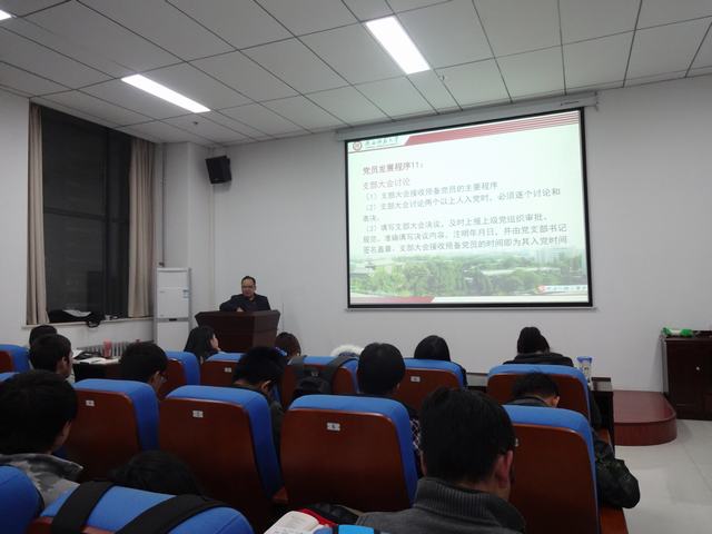 11月20日晚7点,公司第二十五期党课培训第三讲于致知楼六层会议室举行。旅游与环境公司分党委副书记郝高建主讲,全体入党积极分子参加讲座。讲座由2012级非师范本科生辅导员仵鹏浩主持。