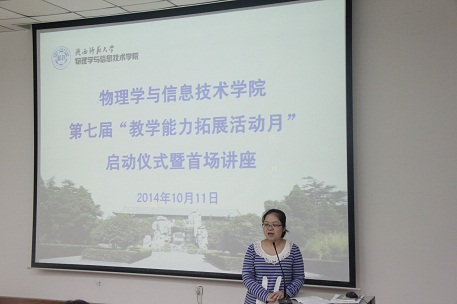 启动仪式结束后,岳辉吉老师为同学们做了“浅谈物理教学语言”的精彩讲座,从物理教学有声语言和教学体态言语两方面做了细致入微的专业性阐述。讲座中,岳老师重点讲述了课堂提问设计的基本原则,要求提问不仅要有一定的难度和宽度,还要有主次轻重之分。同时,就教学体态言语方面讲述了作为一名专业教师应有的形象与素质。讲座内容深入浅出,语言诙谐幽默,博得了同学们一阵阵热烈的掌声,使同学们真正了解了正确的教学语言和教学体态,使同学们受益匪浅。