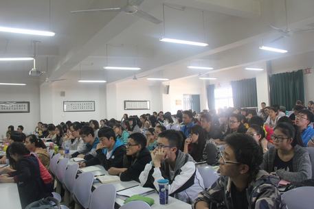 讲座伊始,吴晶老师分别从说课概念的界定,说课的分类、程序、基本内容以及说课设计的理论依据等方面详细介绍了说课,并结合实际情况,在分析当前毕业生说课存在问题的同时,深入浅出地向同学们介绍了说课的必要性,临场技巧和其中容易出现的问题。吴老师的讲话浅显易懂,发人深思,吸引了在场的所有同学。接着,她给大家播放了参加2013年东芝杯选手的讲课说课视频,加深了同学们对讲课说课重要性的认识。此外,她还对同学们以后参加说课比赛提出了几点建议,并鼓励同学们积极参加此类活动,全面提高教学技能。