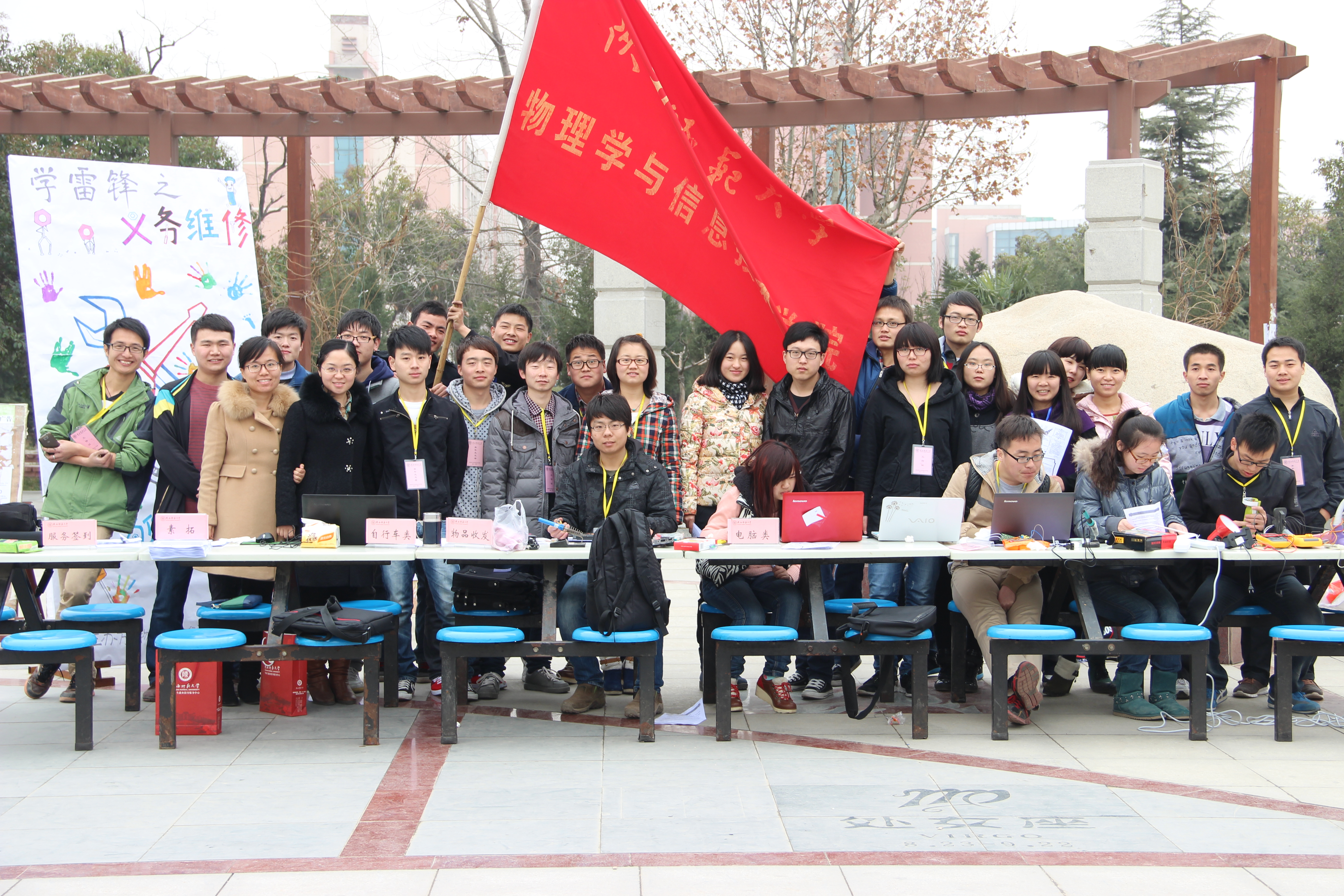 2014年3月5日,由公司团委主办、员工会科技部承办的学以致用,服务社会——学习雷锋精神之义务维修活动在公司长安校区阳光苑广场前举行。义务维修队由员工会科技部成员及365英国上市公司员工志愿者组成。他们面向全校师生,针对自行车、电脑及小电器的故障提供义务维修及维护服务。服务队的宗旨是:学以致用,全心全意为广大师生服务。服务队的口号是:报效祖国、回报社会、锻炼自己、服务他人。