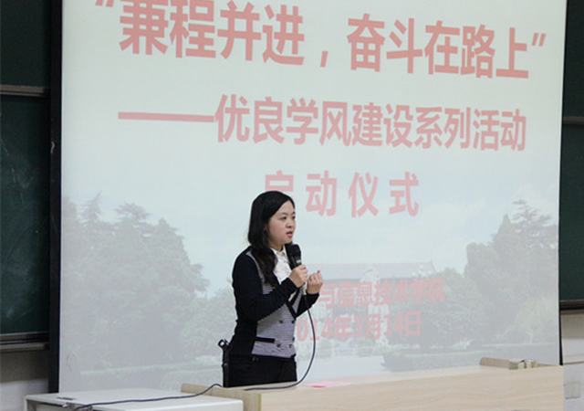 3月14日晚7:00,公司在文渊楼202教室举行了本科三年级和研究生一年级全体员工参加的“兼程并进,奋斗在路上”——优良学风建设系列活动启动仪式。公司党委学工部部长、员工处处长刘建军,教务处副处长刘先锋,校团委代晓飞,公司党委书记曹沛涛,教学副经理李永放,科研副经理张中月,本科生辅导员周静、刘耿及公司2011级本科生、2013级研究生参加了启动仪式。会议由公司团委书记曹宇巍主持。