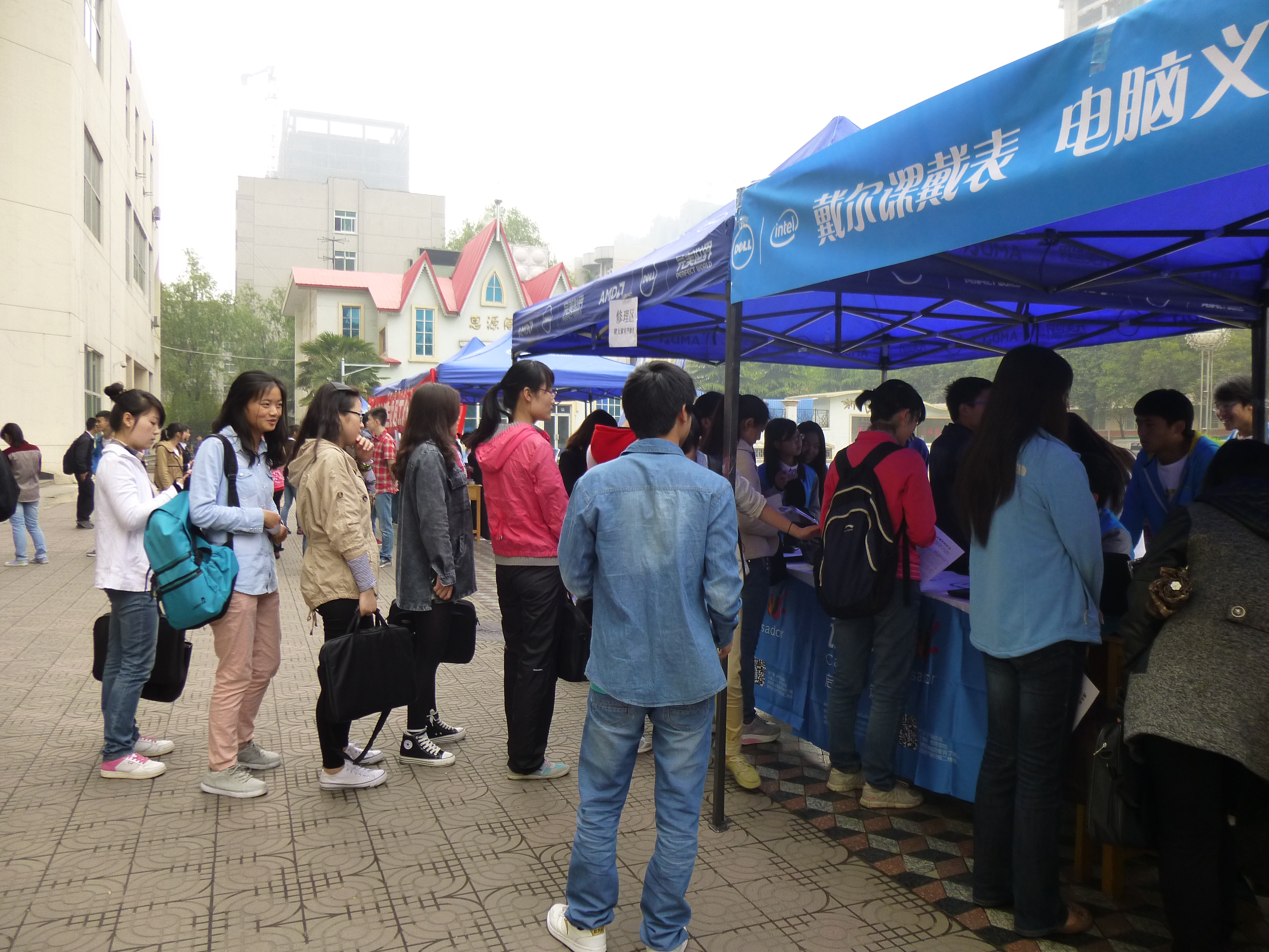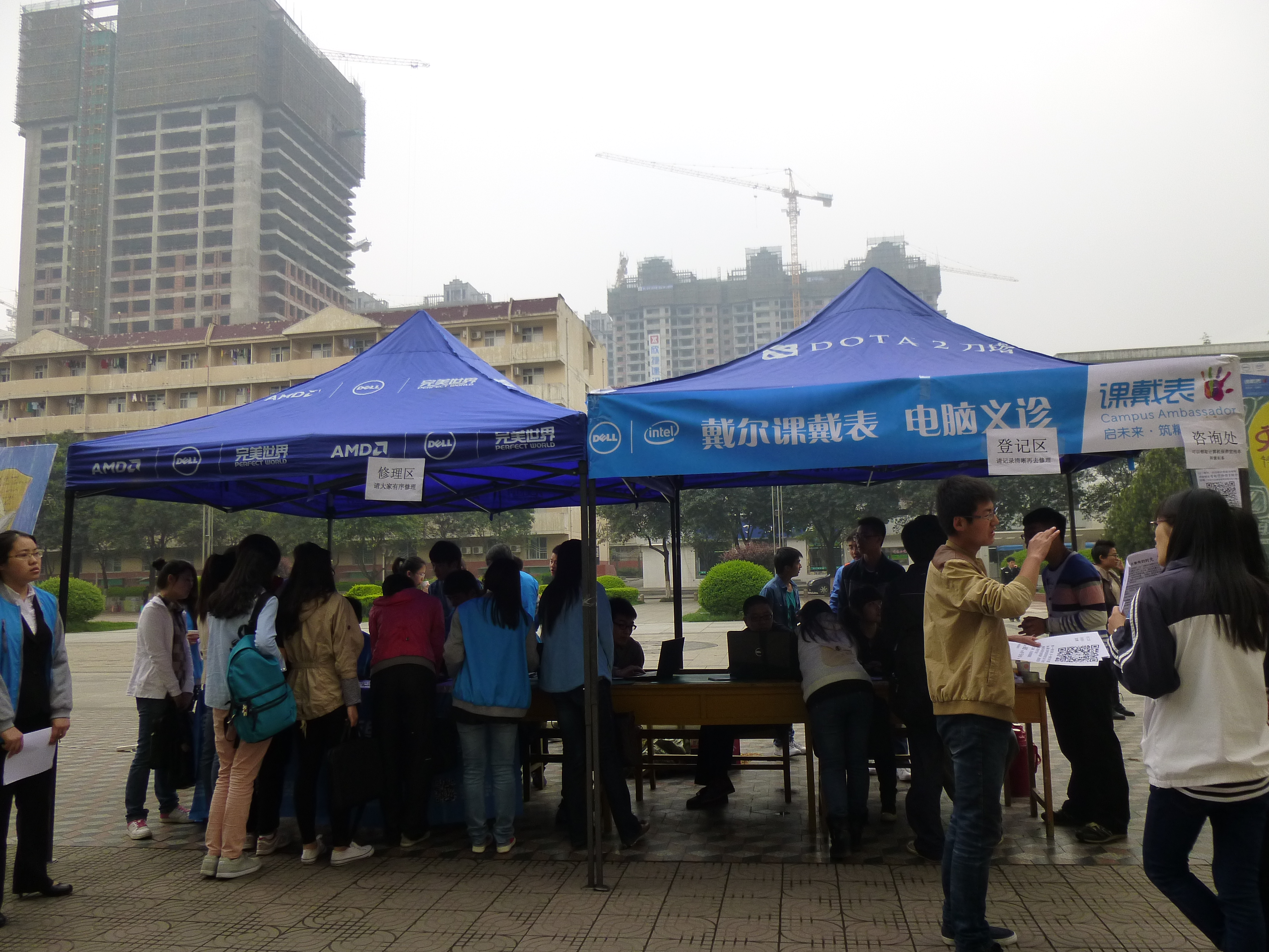 在清凉舒爽的春季,伴着柔柔的暖风,公司电子协会电脑义务维修活动在陕师大雁塔校区喷泉广场上火热展开。此次活动在4月12、13日午间进行,邀请了著名的戴尔电脑公司的专业工程师李伟强、郭林林现场坐镇,帮助同学们解决计算机的难题。现场场面火爆,秩序井然。