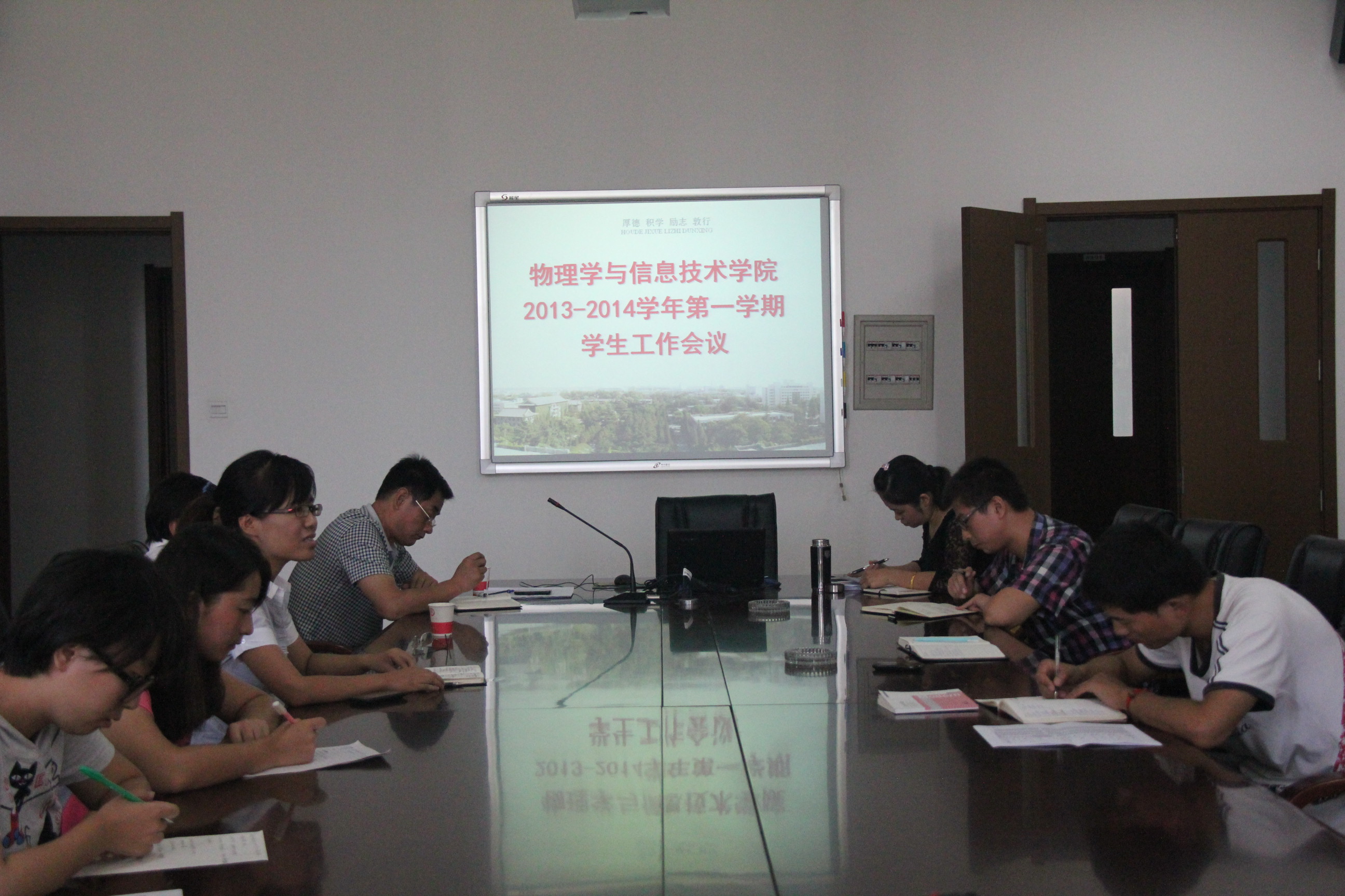 2013年9月16日上午10时,公司在长安校区致知楼三层会议室召开员工工作会议。公司党委书记曹沛涛、行政副经理卢永智、团委书记曹宇巍、2011级辅导员周静、2010级辅导员刘耿及新一届团委、员工会主要员工干部参加了会议。会议由团委书记曹宇巍主持。