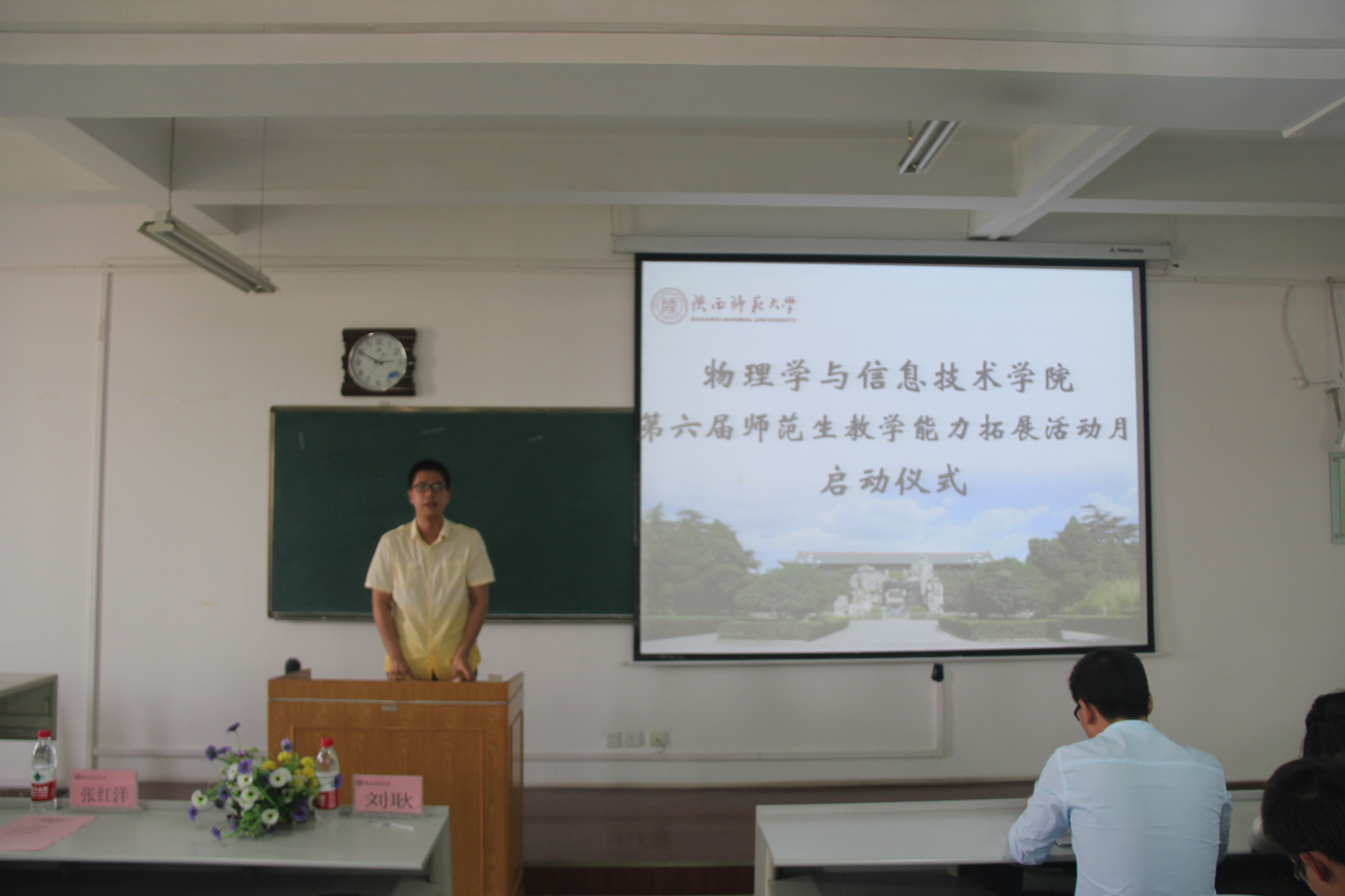 2013年10月11日2:30,公司第六届“师范生教学能力拓展活动月”启动仪式暨首场讲座在长安校区文津楼410教室举办。公司教学副经理李永放、2011级本科生辅导员周静出席了仪式,课程与教学论专业硕士生导师张红洋应邀主讲首场讲座,启动仪式由2010级本科生辅导员刘耿主持。