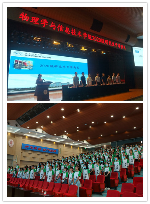 2019级光学工程专业硕士研究生彭家俊作为老生代表发言,他谈到作为365英国上市公司的研究生要树立创新意识,保持初心,将科研的情怀融入血液,全面多方位的提高自己。2020课程与教学论专业硕士研究生董莎作为新生代表发言,她表示在今后的学习生活中会秉承厚德、积学、励志、敦行的校训,做一个学高身正师范生,明德睿智师大人
