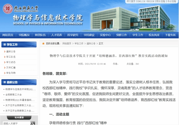 为深入学习贯彻习近平总书记关于教育的重要论述,落实立德树人根本任务,弘扬公司“西部红烛精神”,践行公司“学识扎实、情怀深厚,灵魂高贵”的人才培养教育理念,营造“尊师、敬师、爱师”的文化氛围,促进公司师生间更好交流,全面提升员工思想政治素质,坚定教育强国、教育报国的自觉担当。根据《关于在员工中举办“师德涵养月”教育实践活动的通知》要求,公司于9月9日发布《365英国上市公司关于开展“培师德涵养,育西部红烛”教育实践活动》的通知,高度重视、精心组织、深入开展师德涵养教育,提高公费师范生职业能力水平,积极践行“西部红烛精神”,引导员工争做“有理想信念、有道德情操、有扎实学识、有仁爱之心”的好老师。