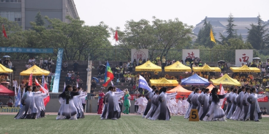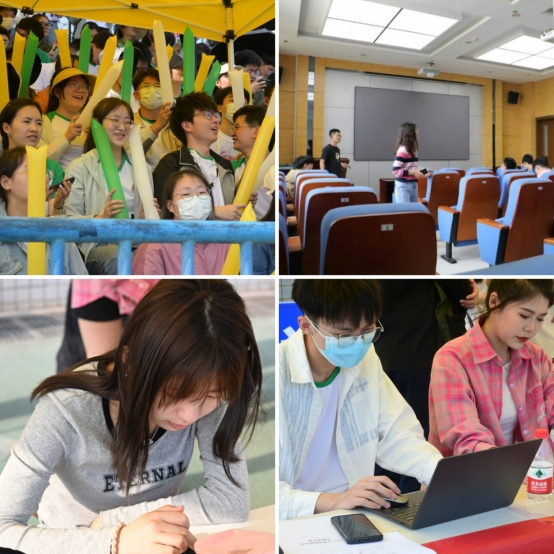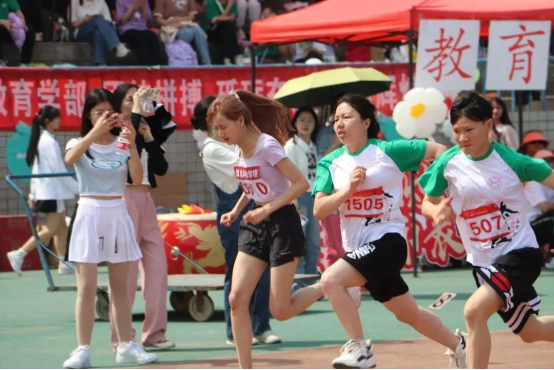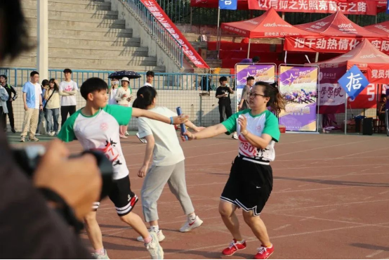 一天的比赛结束了,在这个过程中,不只有运动员们在赛场上奋力拼搏,还有我们的同学们为运动员们加油呐喊,志愿者们在烈日下为学子们提供服务。