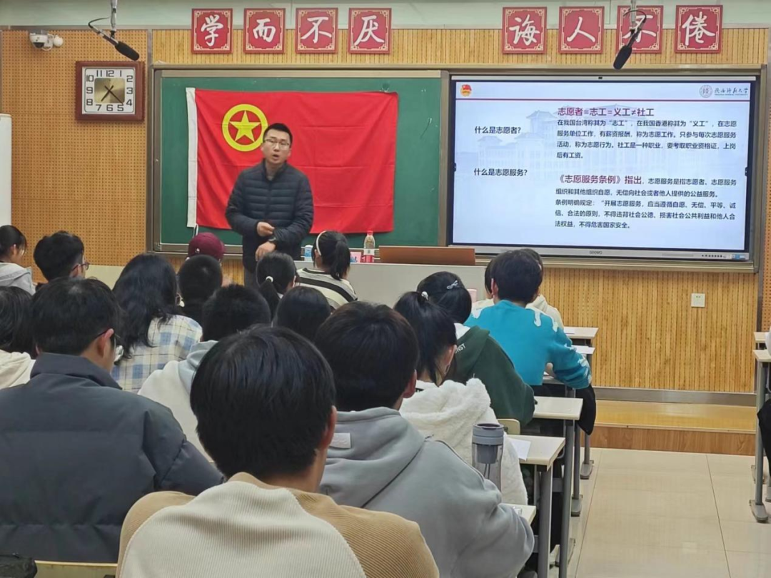 第二次课程,校团委朱宏伟老师为大家介绍了公司的社会实践与志愿服务工作。首先,朱宏伟老师提问同学,什么是志愿者,之后又解释了志愿服务的内容,即志愿者、志愿服务组织和其他组织自愿、无偿向社会或者他人提供的公益服务。中国特色志愿服务的基因由来已久,它的精神也在不断地传承发扬下去。公司聚焦服务教育强国建设,聚焦提升社会实践专业化水平,聚焦创新师德涵养方式,聚焦发挥党员先锋模范作用,聚焦服务员工成长发展过程,实施“红烛领航计划”,积极开展了许多志愿活动,旨在促进广老员工走出校园,走向社会,进行调研观察。