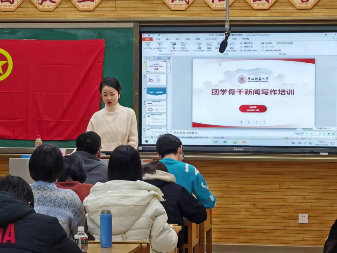 第三次课程,公司2023级辅导员赵睿妮老师为大家带来了以“团干部新闻宣传能力提升”为主题的培训。首先,赵老师简要介绍了自己从事新闻宣传相关工作的经历,并明确了此次课程的目标。其次,从新闻的定义、新闻的特性、校园新闻的特性等方面为学员们讲解了新闻的相关专业知识。之后,赵老师重点围绕新闻的文本要求、新闻的图片要求等方面分享经验,针对前期收集材料中出现的问题强调了一些容易出现的问题。最后,赵老师通过案例分析巩固了本次培训中强调的一些要求。赵老师认真细致的讲解在活动后获得了学员们的一致好评,让学员们在欢声笑语中以此为戒,真正地提升自身新闻宣传能力。