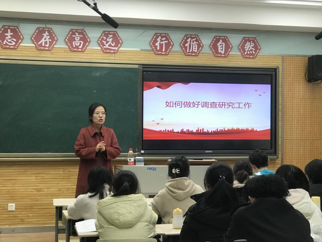 在开班仪式后,周静老师以“如何做好调查研究工作”为主题,引领初级团校的学员们深入体会调查研究工作的至关重要性。周静老师从毛主席调查研究的故事讲起,援引典型事例,带领学员们深刻理解“调查研究是我们党的传家宝”,明确在全党大兴调查研究的总体要求和方法步骤。周静老师向所有学员发出号召,希望同学们在后续的团学工作中要用好调查研究这个工具,通过调查研究来挖掘事实、发现问题、剖析原因、提出解决策略,为决策提供坚实依据,进而提升自己处理团务工作的能力。