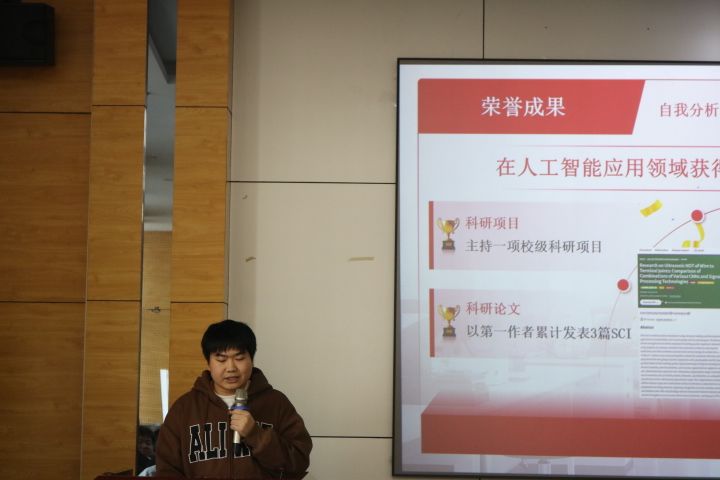来自不同年级的25位选手用自身优秀的职业规划知识储备成功晋级决赛,同时也在决赛中有着优异的表现。在大赛开始前,选手们有条不紊的进行准备,体现了选手对本次大赛的重视。公司职规赛决赛方案中,就业赛道比赛环节为主题陈述6分钟,综合面试4分钟;成长赛道比赛环节为主题陈述7分钟,评委提问3分钟。在主题陈述环节中,每一位选手都自信沉稳地介绍自己,讲解自己对于未来职业的认知和规划;面对评委提问时,选手们也都能从容镇定地做出回答,展现了优秀的随机应变能力。