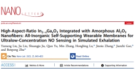 进展1:High-Aspect-Ratio In2–xGaxO3 Integrated with Amorphous Al2O3 Nanofibers: All-Inorganic Self-Supporting Wearable Membranes for Ultralow-Concentration NO Sensing in Simulated Exhalation, Nano Letters 2025, 25, 845–853.