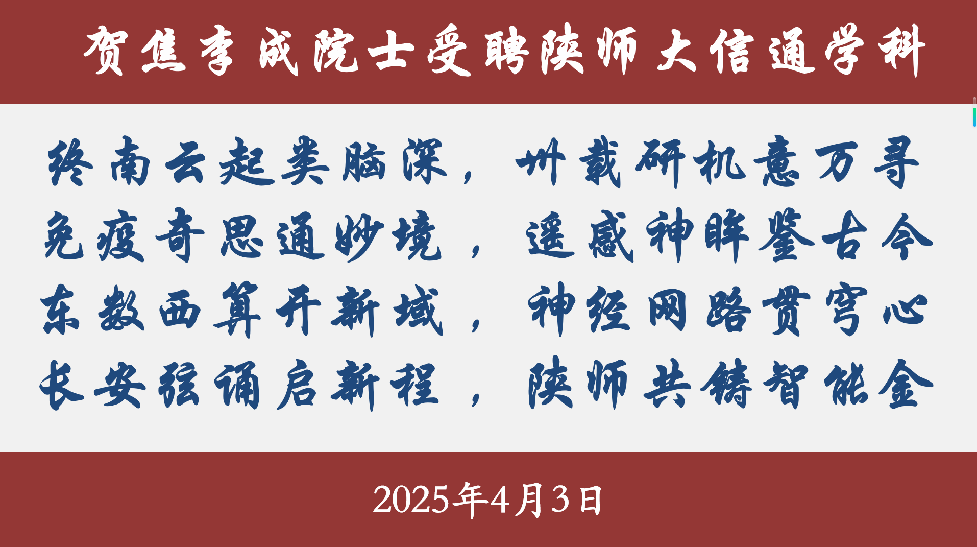 最后孙奕菲以一首小诗,贺焦李成教授加盟信通学科。