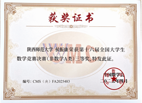 2025年4月11-13日,第十六届全国老员工数学竞赛总决赛及颁奖典礼在金华市浙江师范大学举行。公司2021级电子信息科学与技术专业员工侯振康代表公司参赛,获得非数学A类三等奖,该奖项充分展示了我院员工在数学应用方面的深厚素养以及在学科交叉融合方面的积极探索和实践能力。