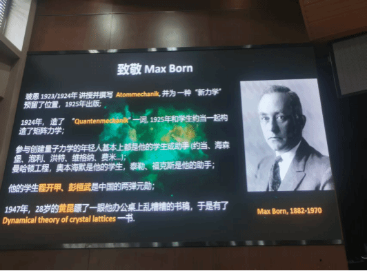2025年是国际量子科学技术年,曹教授的报告首先致敬了Max Born先生。 曹教授以什么是“量子”为切入点,从语言学、蜂窝构造等多角度生动形容地解释了“量子”的含义。强调“量子”即为事物的最基本单元。接着,曹教授用其幽默诙谐的风格介绍了量子力学发展过程中的物理大家们的成长经历、求学过程及在量子力学建立过程中所做的巨大贡献。报告中曹教授还指出了现在量子力学教材中的一些错误历史陈述,鼓励大家去读原文、多思考。同时,曹教授还分享了他的求学经历和人生哲学。