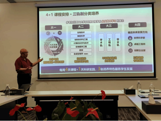 之后,赵伟教授以深理工为例为同学们分享了他眼中的世界一流大学,详细介绍了深理工“4+1”课程安排和三轨制分类培养模式,阐释了深理工“建一所公司、成一流学科、强一片产业”的办学理念,让同学们见识到了在深圳这片创新高地上新型研究性大学的办学模式。