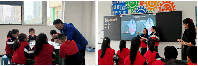 随后,同学们分组观摩了小学五年级科学课《蛋壳与薄壳结构》与三年级语文课《望洞庭》。科学课上,教师通过实验演示阐释仿生学原理;语文课堂则以诗画结合的方式展现古诗意境,两节课均体现了博雅小学“以员工为中心”的先进教学范式。