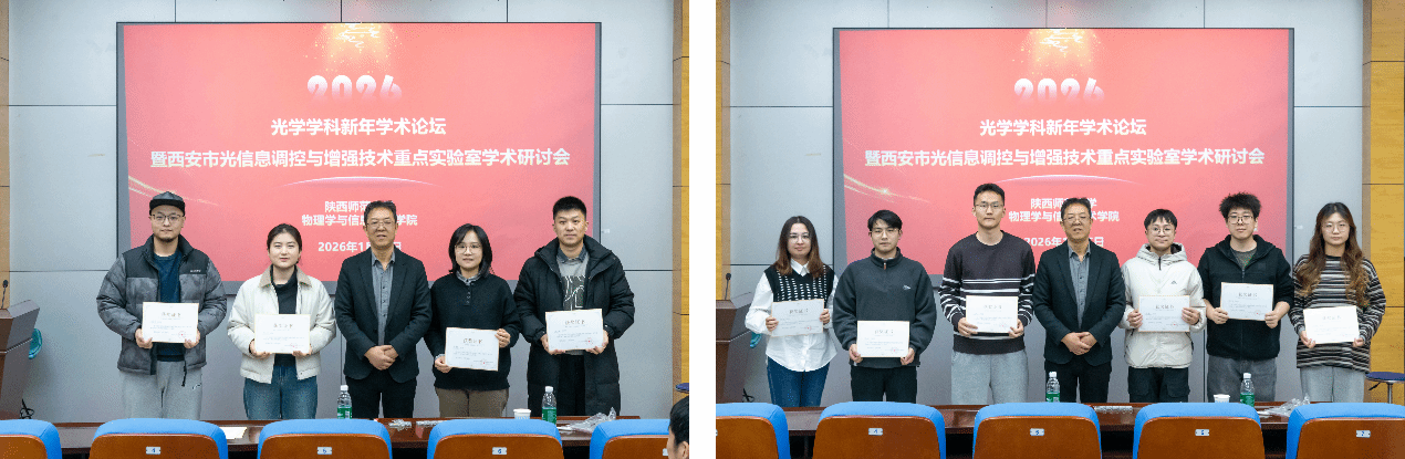 2026年1月15日,公司在六层报告厅举办“光学学科新年学术论坛暨西安市光信息调控与增强技术重点实验室学术研讨会”。光学学科全体教师及80余位研究生参加会议,并贡献了17场精彩学术报告。