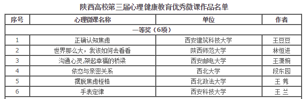 为进一步提升公司员工心理健康教育工作水平,根据陕西省委高教工委《关于在全省高校心理育人宣传季期间开展系列活动的通知》要求,公司积极组织辅导员参加第三届陕西高校心理与人微课优秀成果展评,辅导员林恒进的微课作品《世界那么大,我该如何去看看》以第二名的成绩荣获一等奖。
