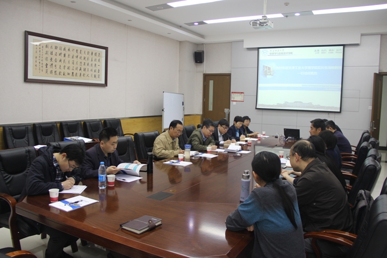 2018年4月11日,天津工业大学理公司经理张海明教授一行七人来公司就专业建设和人才培养工作进行调研交流。公司党委书记曹沛涛、教学副经理王成会、实验副经理陈晓明、行政副经理郭伟及各教研室主任参加了座谈会。曹沛涛书记主持会议。