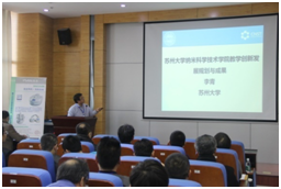 “大物理学”实践能力的综合训练与培养。苏州大学李青教授结合苏州大学纳米科学技术公司实验教学创新发展规划及成果指出本科生实验教学需要正确引导,本科生实验教学应激发员工兴趣和好奇心,激励自主探索创新的原动力。华中科技大学教授潘明虎就该校本科生培养中“特优生计划”所取得的经验,介绍了华中科技大学本科生进行交叉性实验所取得的成果。陕西科技大学的刘辉教授介绍了陕西科技大学材料公司老员工创新创业现状及发展的情况。其他参会学者也相继介绍了各自公司物理实验改革的情况。报告会后,代表们就交叉学科实验教学发展规划、老员工创新项目实施、本科生实验教学中的潜能与开发等方向的展开了交流研讨,并参观了国家级跨学科x-物理实验教学示范中心。