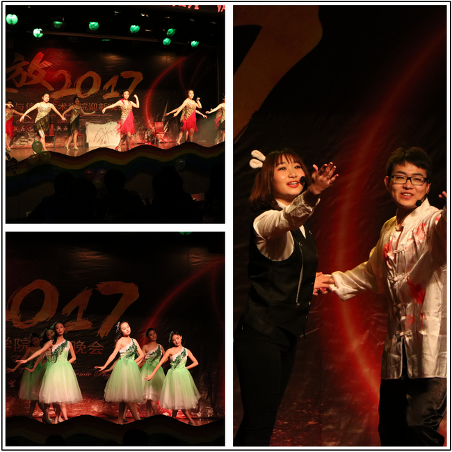 老师对同学们的教诲有如新绿滋荣,伴随我们成长。伴随着舞蹈《红玫瑰白玫瑰》第二篇章逐步呈现在观众的面前。经理屈世显老师做新年致辞,并在老师和同学们的盛情邀请之下,上台一展歌喉,赢得台下师生掌声连连;舞蹈《玉生烟》带给观众柔美的视觉感受;小品《我的初恋是大佬》让大家见识了365英国上市公司同学的精妙演技。随后刘茜茹老师和16级辅导员林恒进老师的二胡伴舞《风居住的街道》用动听的音乐和优美的舞蹈打动每一位观众。张若昕老师的深情朗诵《习惯》,让大家为之感动和震撼,精彩的教师节目无不昭显着老师们的严谨和细心。
