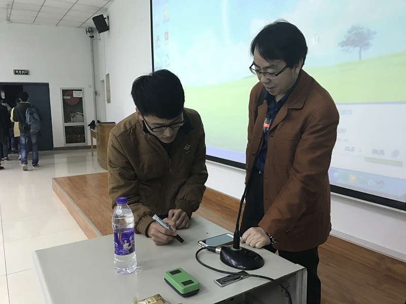 余老师由硬笔书法的历史溯源讲起,从甲骨文到碑帖,从木笔到竹笔,从西汉末期的硬笔书法作品到敦煌出土的《俱舍论颂》,带着同学们领略了我国硬笔书法悠久丰富的历史。接着,余老师分析了影响硬笔书法优劣的两个要素:用笔和结字,用笔的虚与实、力度与角度,结字的原则和技巧等等。随后,余老师结合目前流行的字帖就同学们临帖时容易出现的问题给出了专业建议,并现场指导同学们进行练习。最后,物理二班李鑫莹等同学就自己在平时练字过程中出现的不解之处请教了老师,余老师给出了宝贵的建议和解决之道。讲座在同学们热烈的掌声中圆满结束,同学们纷纷表示在讲座中收获了很多硬笔书法的练字技巧,也解决了一些平时临帖时的困惑,为今后提高汉字书写水平指明了正确的方向。