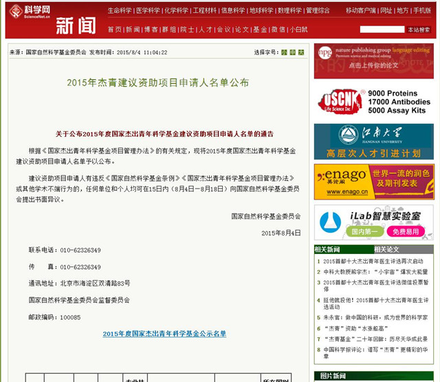 近日,公司96届员工、复旦大学电子工程系博士生导师他得安教授的《医学超声检测(批准号:11525416)》项目获得国家自然科学基金委员会发布的2015年杰出青年基金资助项目,引起声学界的广泛关注和赞誉。
