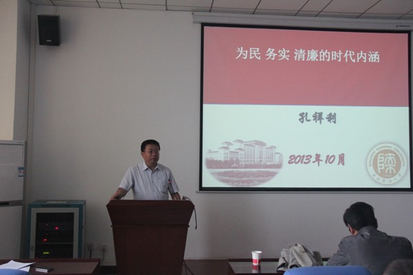 孔祥利教授结合国内外的经验教训和当前党面临的新形势、新任务和新要求,深入浅出、旁征博引、联系实际,深刻地阐释了“为民 务实 清廉”的时代内涵。他指出,在全党深入开展以“为民、务实、清廉”为主题的党的群众路线教育实践活动,是实现党的十八大确定的奋斗目标、保持党的先进性和纯洁性、巩固党的执政基础和地位的必然要求。孔祥利教授重点对“为民务实 清廉”的理解阐释做了深入的讲解。他强调,“为民”是坚持党的群众路线的目的与根本,是我们共产党人最高的追求;“务实”是坚持党的群众路线的具体方法和有效途径,反映了我们党实事求是的思想路线,也是党的群众路线中“从群众中来,到群众中去”的具体体现和要求;“清廉”是坚持群众路线的保障,是共产党人的本色与最可贵的品质。孔祥利教授通过讲述抗战时期、解放战争时期反映军民鱼水情的典型事例和当今百姓深恶痛绝的“门难进、脸难看、事难办”现象、一些官僚的贪污腐败等 “四风”的具体表现做对比,深刻阐述了党的群众路线的紧迫性、必要性,指出全体党员同志要牢牢把握“为民 务实 清廉”的活动主题,在“为民”上下功夫,树立“师生为本”的理念,增强服务师生的自觉性和主动性;在“务实”上出实招,坚持重实际、鼓实劲、求实效,解决阻碍公司发展和师生关心的热点问题;在“清廉”上见成效,坚持惩防并举、标本兼治、综合治理,始终保持反腐的高压态势,做到风清气正。