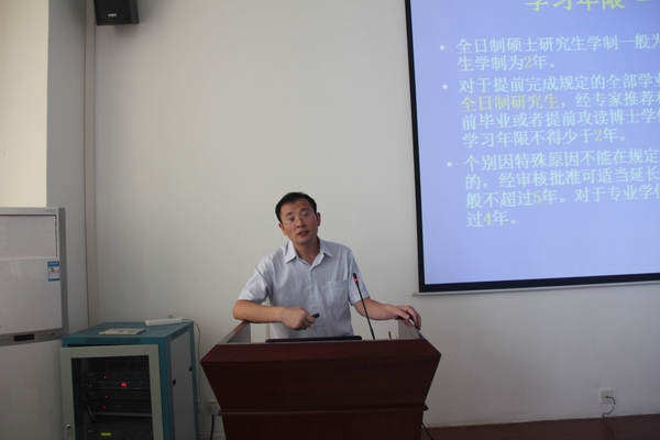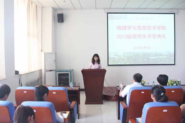 开学典礼上,曹宇巍通报了公司2013年研究生招生情况。公司2013年共招收139名研究生,其中硕士129人,博士10人,为公司历史上研究生招生人数最多的一次。截止会议当天,硕士报到126人,博士报到10人。科研副经理张中月介绍了公司的基本情况、学科介绍、培养方式、学习年限、课程设置及其它学业要求等,并要求研究生们在三年的时间里培养自己显性和隐性的素养,按规定完成学业,全面提高自身能力。研究生导师代表王新刚教授用流利的英语发表了热情洋溢的讲话,他提出研究生要围绕导师开展工作,合理利用时间,扎实研究,并提出关于研究生学习的宝贵建议。郭建敏同学作为新生代表进行发言,她从校训中感悟出师大精神,提出心态决定未来,表达了立志科研、奋发图强的坚定决心。