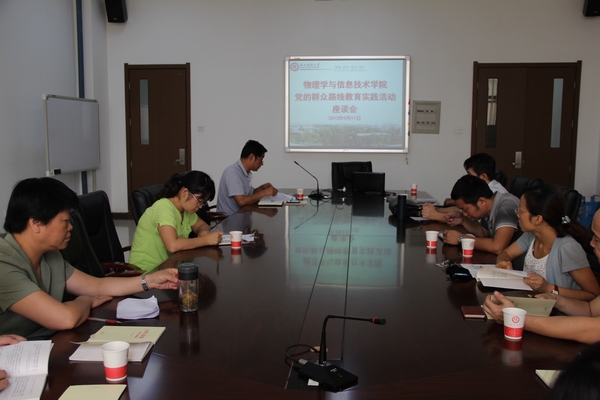 9月12日,公司党的群众路线教育实践活动座谈会在致知楼三层会议室召开。公司党的群众路线教育实践活动领导小组成员、教工党支部委员、教研室主任、工会委员参加了座谈会。座谈会由公司党委书记曹沛涛主持。