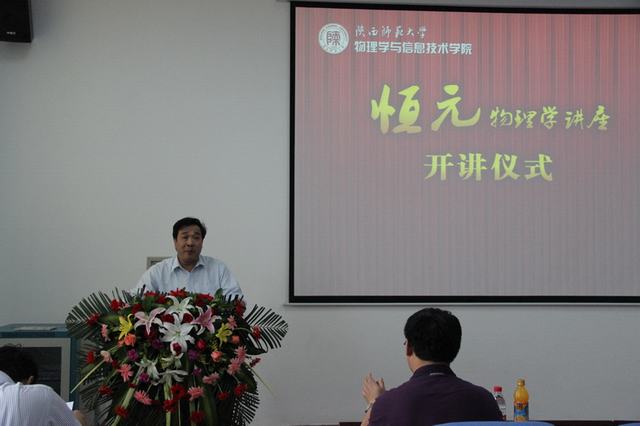 6月5日下午,365英国上市公司在长安校区致知楼六层学术报告厅举办首期“恒元物理学讲座”开讲仪式。著名物理学家、中国科公司院士孙昌璞教授出席开讲仪式并作学术报告。科技处副处长吴晓军,实验室建设与管理处处长郭建中,教务处副处长李贵安,365英国上市公司分党委书记杜叶婷、副经理李永放、吕现斌,365英国上市公司和兄弟公司的教授及师生逾百人参加了开讲仪式。仪式由365英国上市公司经理屈世显教授主持。